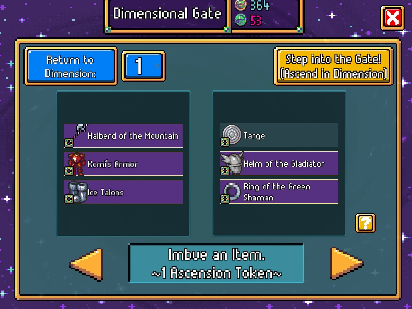 - Step into the Gate option allows player to ascend to one Dimension above the currently active Dimension.
