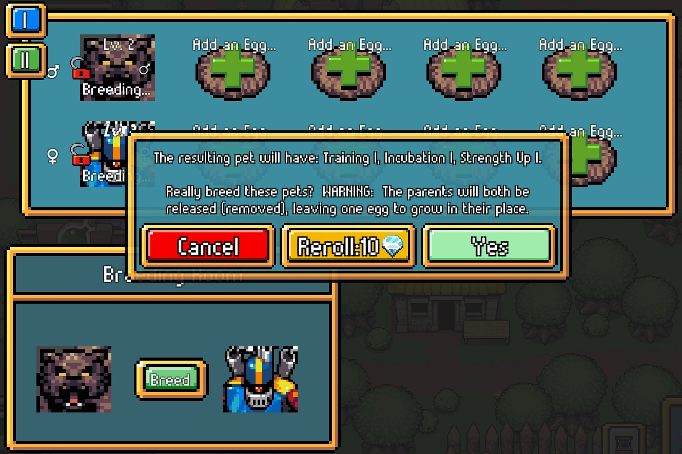 - If players have 2 monster pets, of opposite genders, they can choose to breed the pets. Doing so will sacrifice the parents, but will grant an egg with potentially greater Traits and Aptitude.