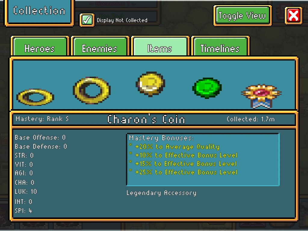 - 10 items collected (Rank C) : +20% to item's Average Quality